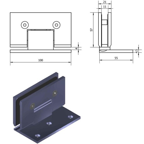 ◆Using two hinges with 3/8" to 1/2" glass (10 to 12 mm) the hinge will hold up to 110 lbs. (50 kg) with a maximum door width of 36" (914 mm).
