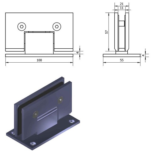 ◆Using two hinges with 3/8" to 1/2" glass (10 to 12 mm) the hinge will hold up to 110 lbs. (50 kg) with a maximum door width of 36" (914 mm).