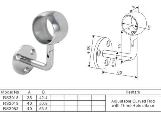 Stainless Steel Handrail Adjustable Wall Mount Bracket
